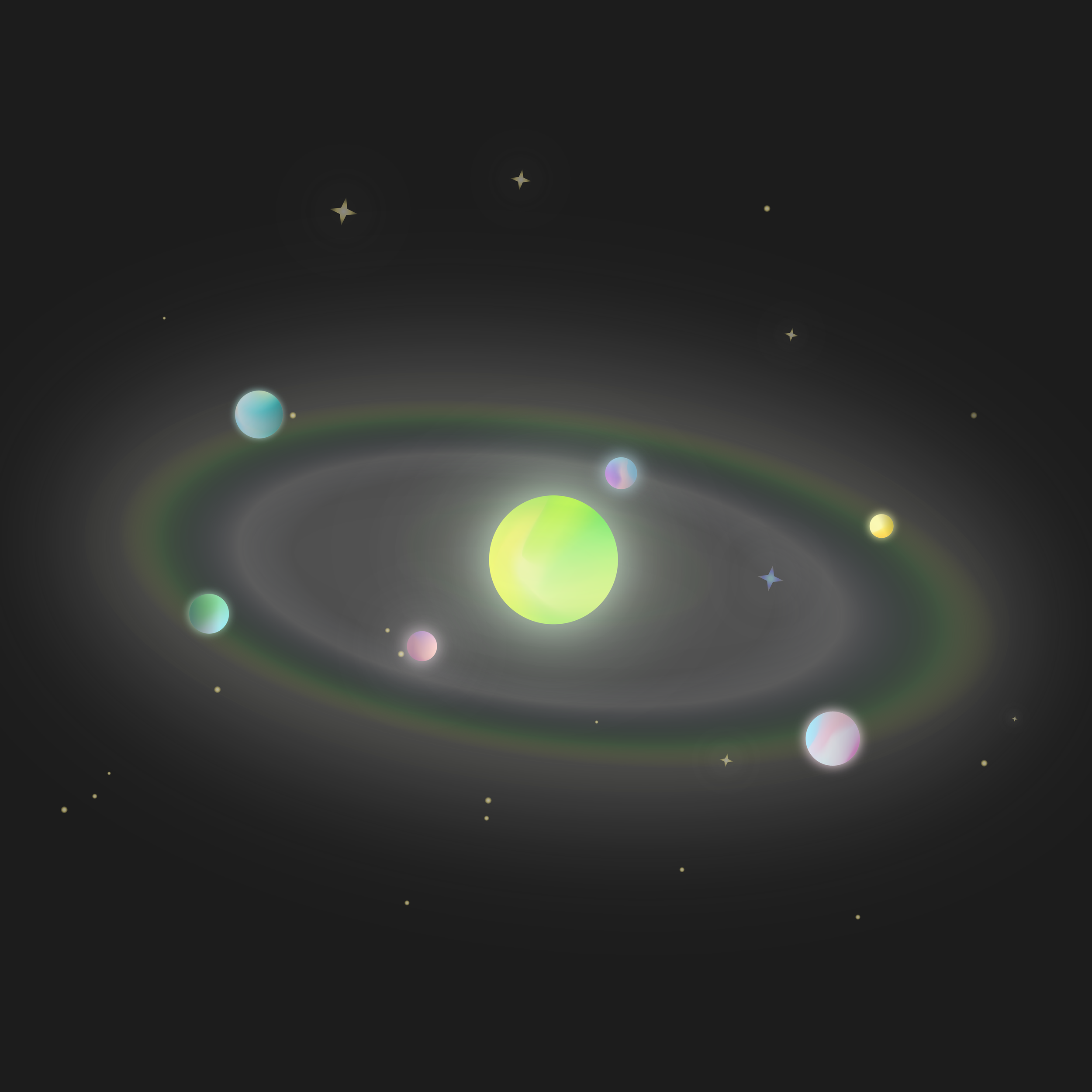 WAWA07 is a harmonious solar system, where six planets orbit a radiant yellow-green sun, thriving on love and balance deep within the Milky Way galaxy.
